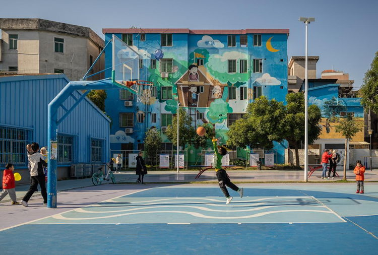 东莞市莞城街道出租屋示范点共享体育场所(2023年12月24日摄)。新华网发(黄亚非 摄)