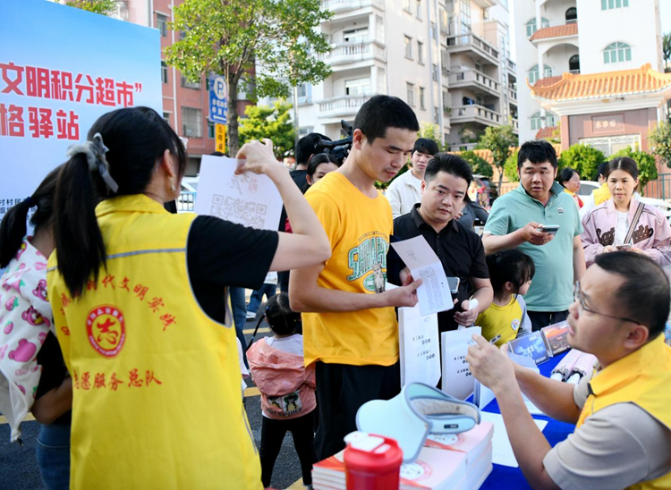 2023年11月25日,东莞市凤岗镇探索送“文明积分超市”进智慧综合网格驿站模式。新华网发(赖鸿程 摄)