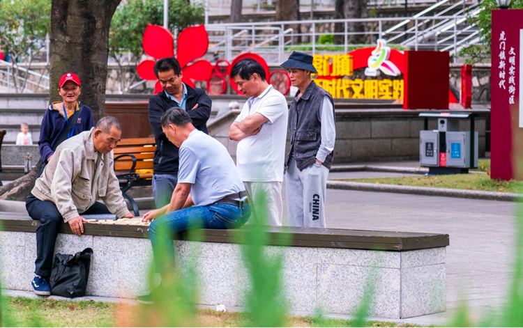 2023年12月13日,东莞市虎门镇新时代文明实践中心广场设置的“棋逢对手”棋类对战区,群众们正在下棋休闲。新华网 钟奕 摄