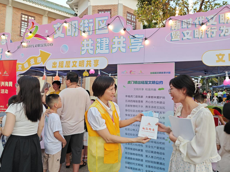 2023年7月6日,虎门镇文明实践街区开展《东莞市文明行为促进条例》宣传和出租屋文明租住锦囊派发活动。新华网发(邓国锵 摄)