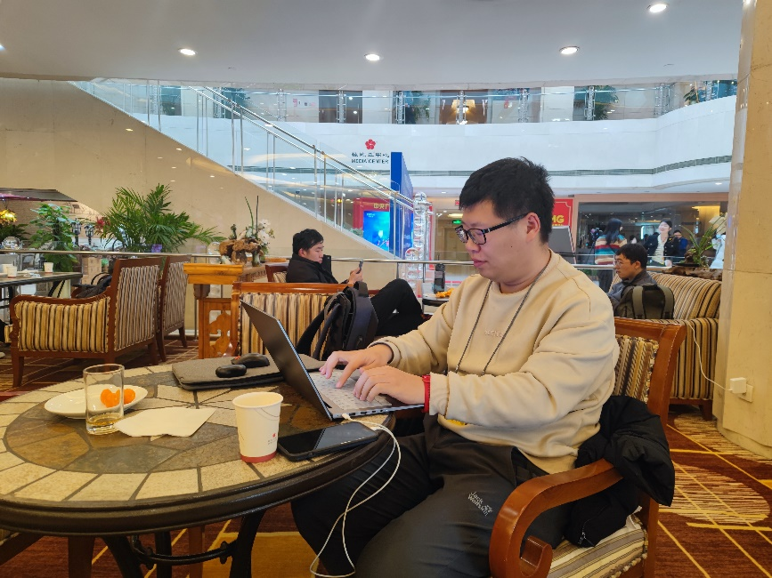 正在写稿的香港大公报的记者说,这是新冠疫情防控实现平稳转段之后,自己第一次来到内地报道两会,感觉很荣幸很期待。来自澳门新闻通讯社的记者说,自己连续10多年报道中国两会,但每次来都有不一样的新感受,希望今年能听到更加“开放”的声音;在十四届全国人大二次会议、全国政协十四届二次会议新闻中心的背景板前,不时有媒体记者在录制视频,推出自己的两会预热报道。