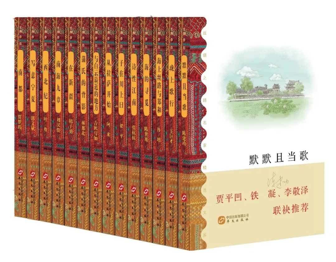 文库第一辑,收录的图书有14种:《默默且当歌》《垅上歌行》《海上丝路与郑和》《海的寻觅》《子在川上曰》《诗性江南》《从拉萨开始》《与白云最近的地方》《蒲氏的背影》《在新疆》《西北纪》《写意宁夏》《南海九章》《南都》。