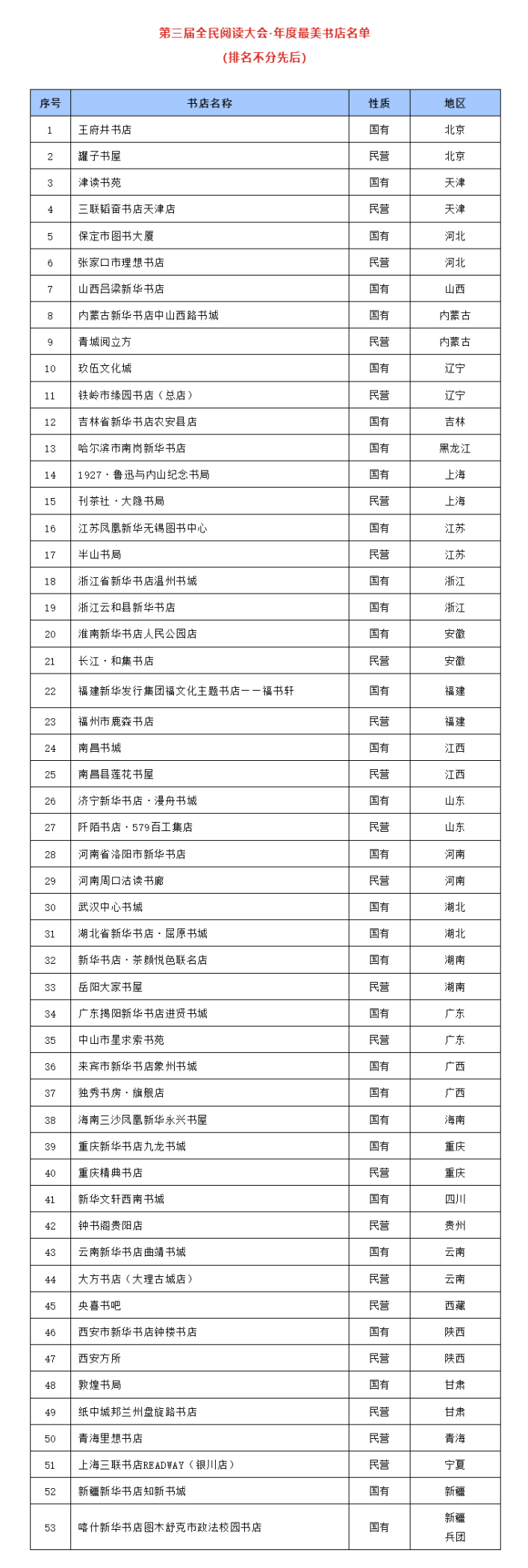 4月24日,第三届全民阅读大会·年度最美书店发布活动在云南昆明举办,53家书店获得“年度最美书店”荣誉。
