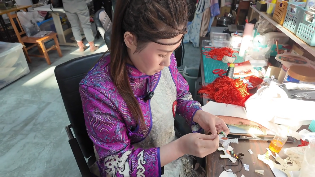 在黑龙江省佳木斯市一家非遗工坊内,一件件鱼皮工艺制品经过画稿、裁剪、拼接、缝制、粘贴等多道工序,完全由手工制作而成。鱼皮纹理的冰箱贴、福袋,雪花、雪人……非遗产品不断推陈出新,给传统技艺注入新动能,也吸引了越来越多的年轻人参与到非遗文化传承中,将赫哲族鱼皮技艺的新故事娓娓道来。