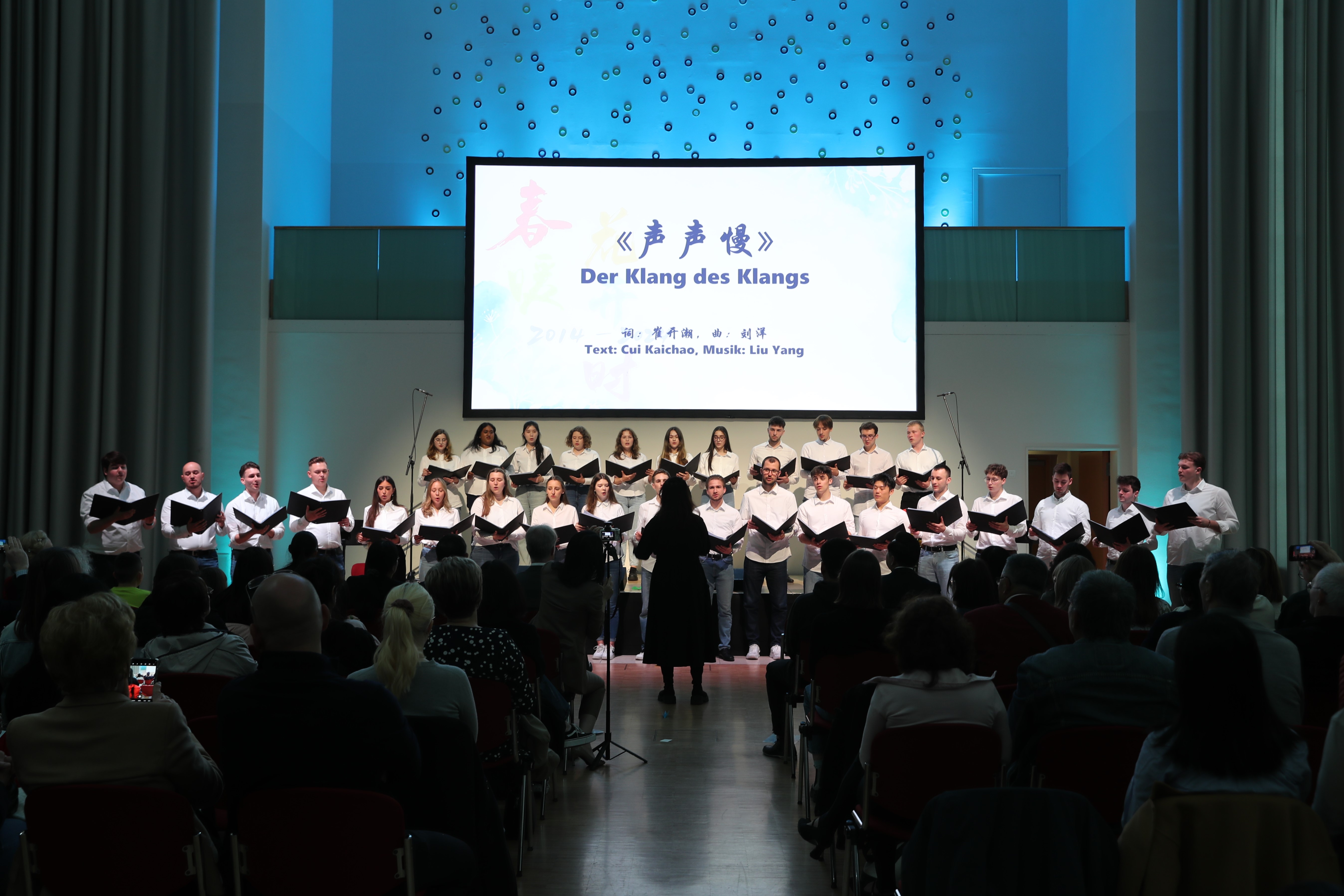 在音乐会上,伯乐中文合唱团共演唱12首歌曲,从经典曲目《同桌的你》《声声慢》,到流行歌曲《童话》《成都》,再到中德歌曲串烧《向云端+云端之上》。合唱团用优美的歌声和真挚的情感赢得观众阵阵掌声。