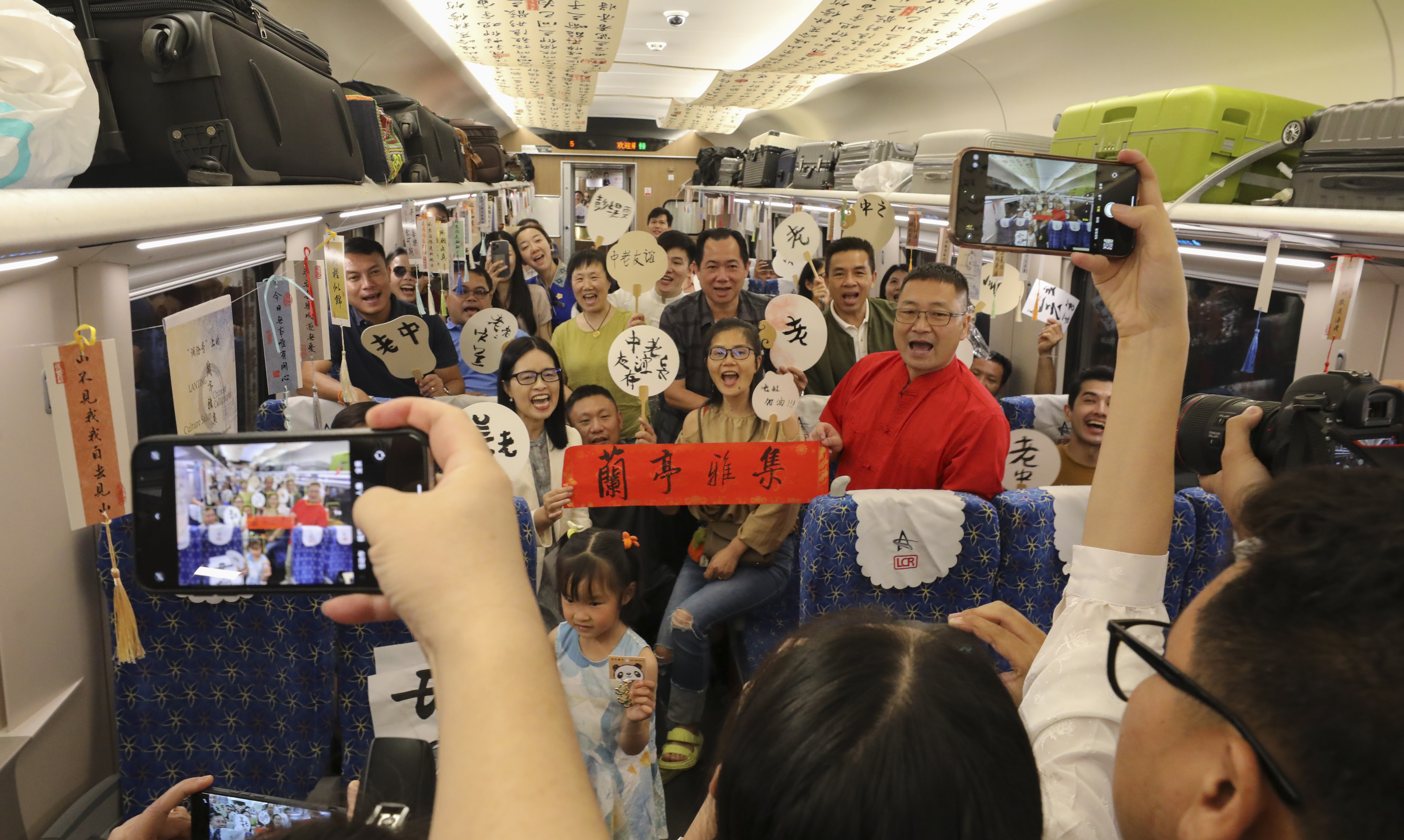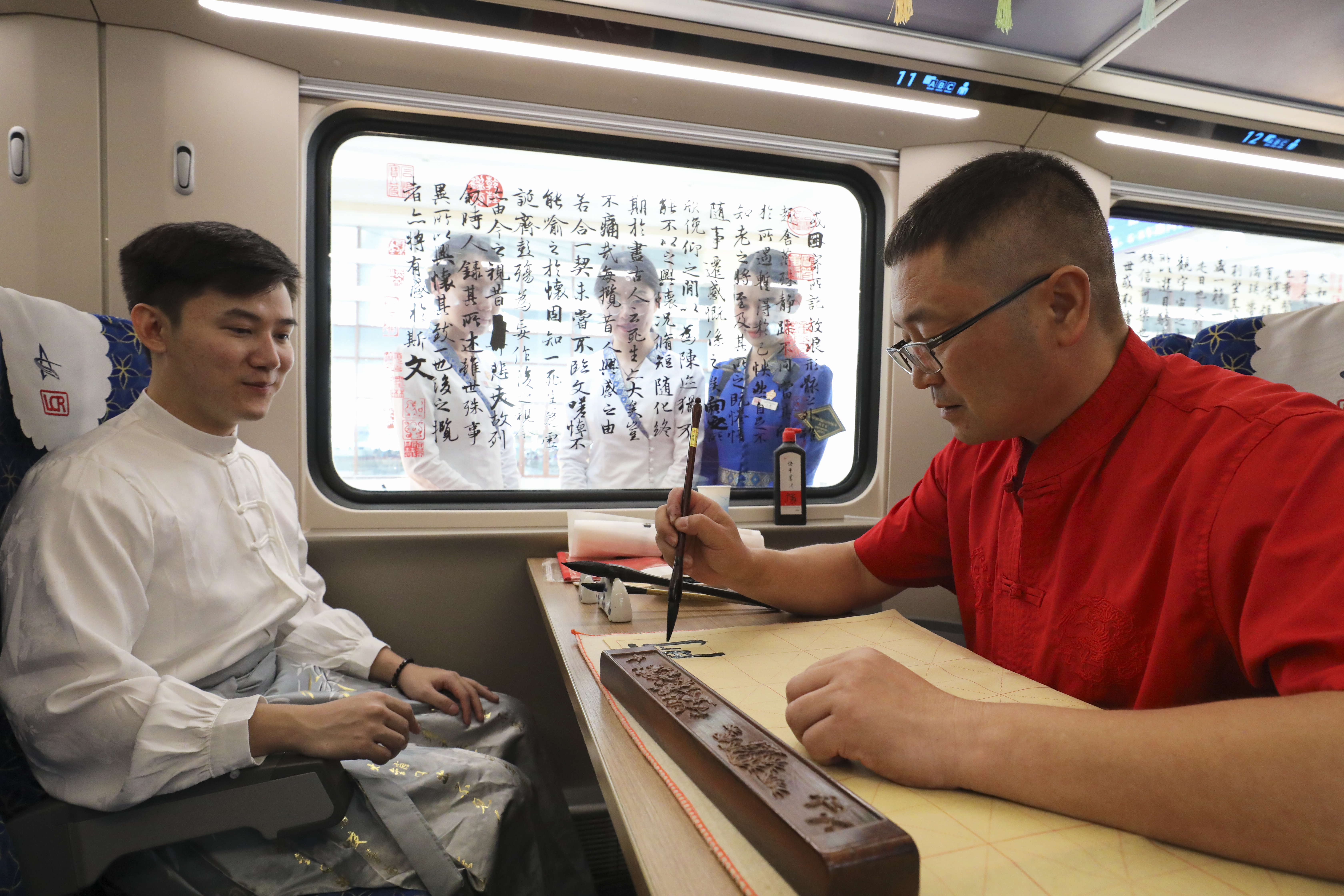 “在火车上体验中国书法真有趣”——“兰亭·雅集”中国书法主题活动走进中老铁路