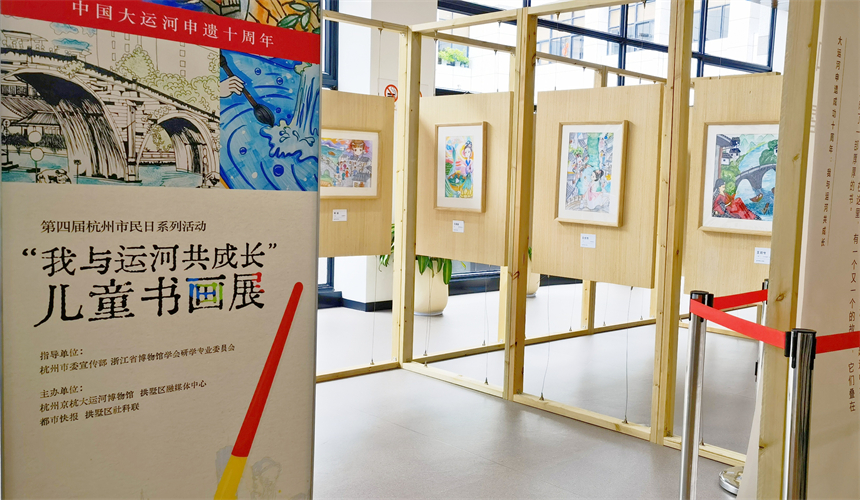 中国京杭大运河博物馆内的儿童书画展一角。新华网 李雪芹 摄