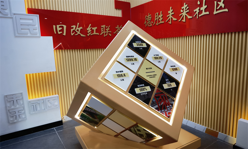 杭州大关街道新时代文明实践所内展出的旧改魔方。新华网 李雪芹 摄