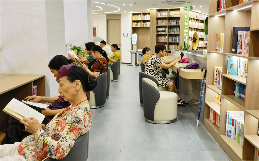 社区居民正在杭州大关街道新时代文明实践所的共享书房里享受充实美好的阅读时光。新华网 李雪芹 摄