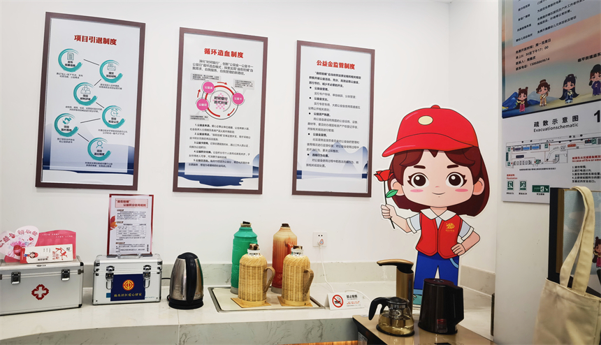 杭州志愿服务特色文化驿站“庙街拾铺”一角,临平志愿者形象代言人“庙庙”举着一枝红玫瑰,意为“赠人玫瑰,手有余香”。新华网 李雪芹 摄