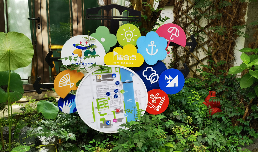 杭州桥西文明实践街区的儿童集合点标志牌。新华网 李雪芹 摄