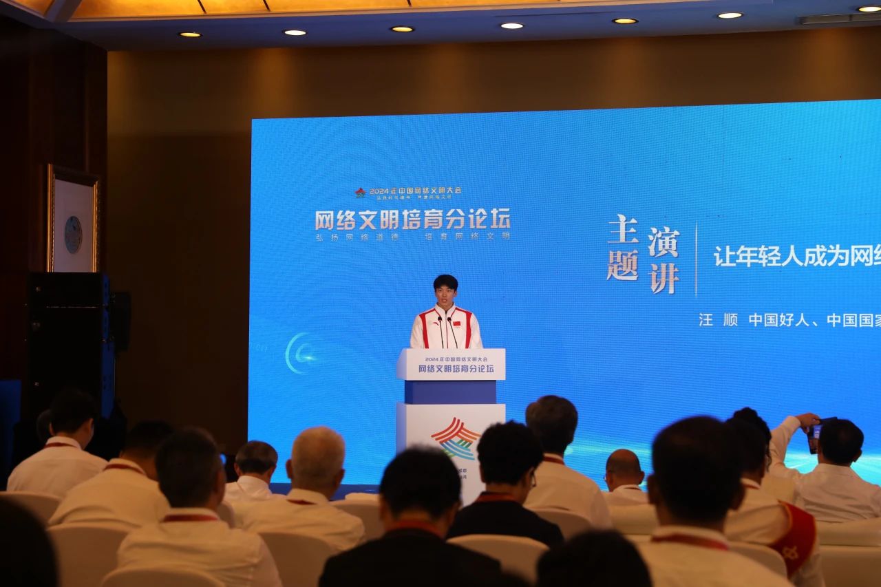 其中,对于如何“让年轻人成为网络文明建设中坚力量”,“中国好人”、中国国家游泳队运动员汪顺在演讲中表示,希望每一位与时代同行的年轻人,能够以《新时代青少年网络文明公约》为指引,用理念和行动谱写网络文明之歌,奏响新时代的青春强音。