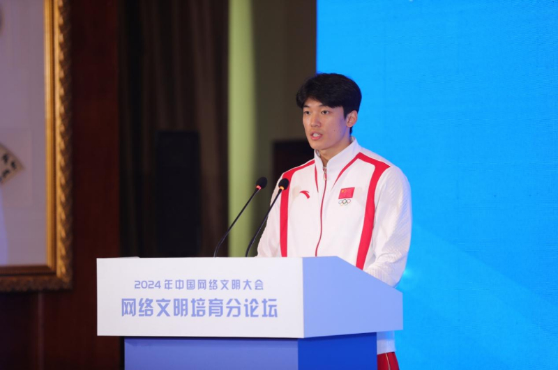 “中国好人”、中国国家游泳队运动员汪顺发表演讲。刘旭飞 摄