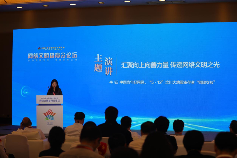 “那时正是因为越来越多的正能量如涓涓细流汇聚成一股不容忽视的力量,帮助我度过了那段艰难时光。”当27岁的“中国好人”、“5·12”汶川大地震幸存者“钢腿女孩”牛钰微笑着走上舞台演讲时,台下响起了热烈的掌声。“青年应该主动扛起担当,争做网络文明的倡导者、传播者、实践者、维护者,以时代新风塑造和净化网络空间,为新时代新征程凝聚向上向善的精神力量和推进中国网络文明建设贡献青春力量!”牛钰在现场号召。