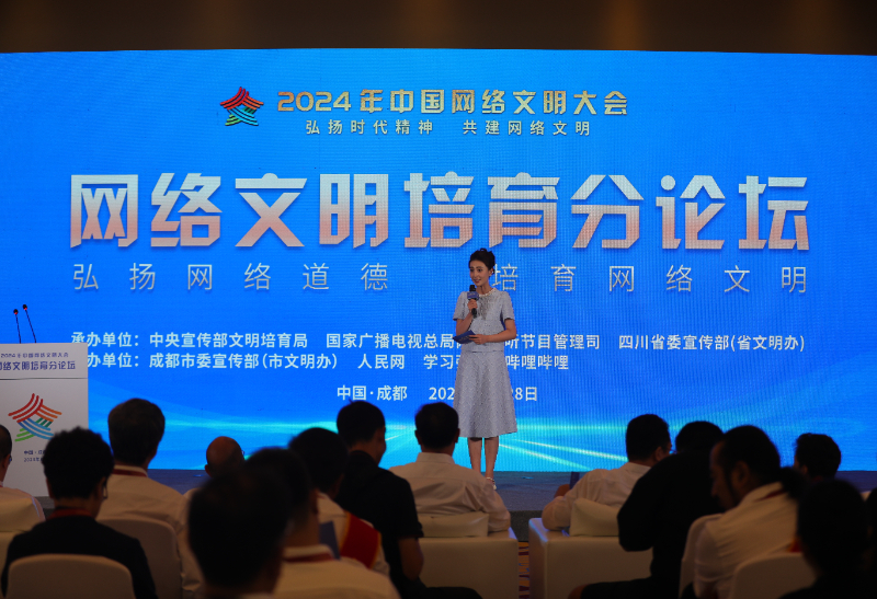 八月蓉城,盛夏未央,生机盎然。8月28日下午,以“弘扬网络道德 培育网络文明”为主题的2024年中国网络文明大会网络文明培育分论坛在四川成都举行。论坛由中央宣传部文明培育局、国家广播电视总局网络视听节目管理司、四川省委宣传部(省文明办)承办,成都市委宣传部(市文明办)、“学习强国”学习平台、人民网、哔哩哔哩协办。