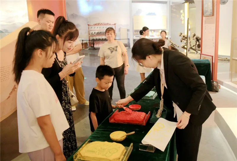 运河流光溢彩,非遗历久弥新。8月27日,在中国大运河非物质文化遗产展示馆内,不少游客正在参观游览。在这里,大运河流域沿线8省(市)的航运风貌、代表性建筑和非遗项目一一呈现。其中,以“一船明月过沧州”为主题的沧州非遗保护成果展,生动展示沧州的非物质文化遗产,吸引游客驻足观看。“这个展示馆很棒,不仅可以让孩子了解到很多运河文化和非遗项目,还可以现场体验非遗项目,真是不虚此行。”来自北京的游客周美说。
