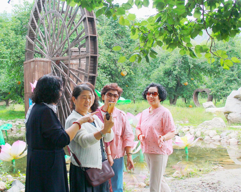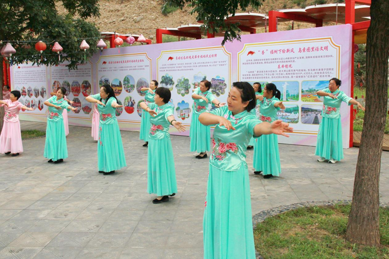 呼和浩特市回民区东乌素图村村民在古树广场跳起“杏福”舞 新华网发(呼和浩特市融媒体中心记者王中宙 摄)