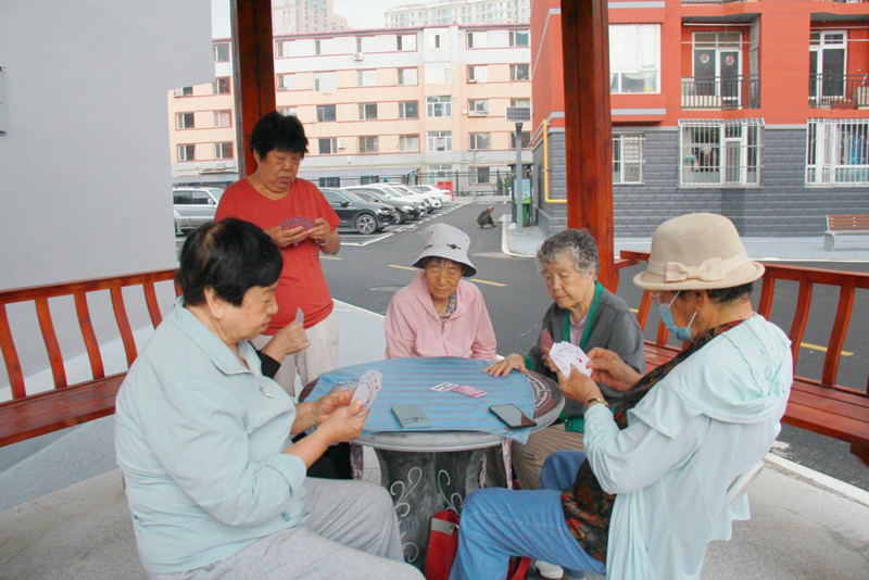 呼和浩特市赛罕区和兴园小区居民在新建的凉亭休闲娱乐 新华网发 (呼和浩特市融媒体中心记者王中宙 摄)