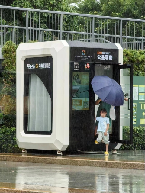 在福田区香蜜公园,有一个面积4平方米左右的智能琴房,市民通过手机扫码即可进入。