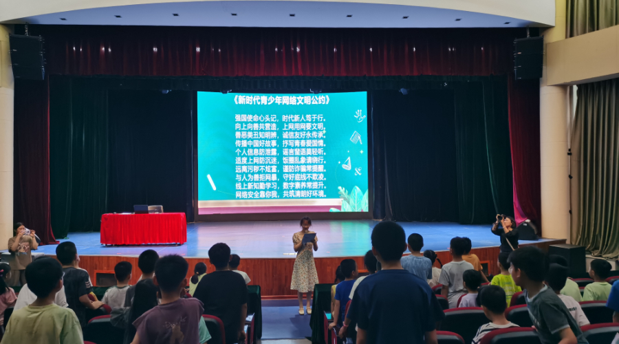 为进一步强化未成年人网络保护,营造暑期健康安全的网络环境,漳州市委网信办近日在漳州青少年活动中心开展“清朗·暑期未成年人网络保护普法宣传”教育活动。活动现场,工作人员通过现场讲解、播放普法短片、有奖问答等形式,向青少年普及网络安全、网络防沉迷、网络辟谣知识和不良信息举报方式,并向青少年们宣传解读《未成年人网络保护条例》,引导青少年科学上网、文明上网、安全用网。参加活动的青少年们共同朗诵《新时代青少年网络文明公约》。大家纷纷表示,要学习网络法律法规,筑牢网络安全防线,共建清朗网络空间。
