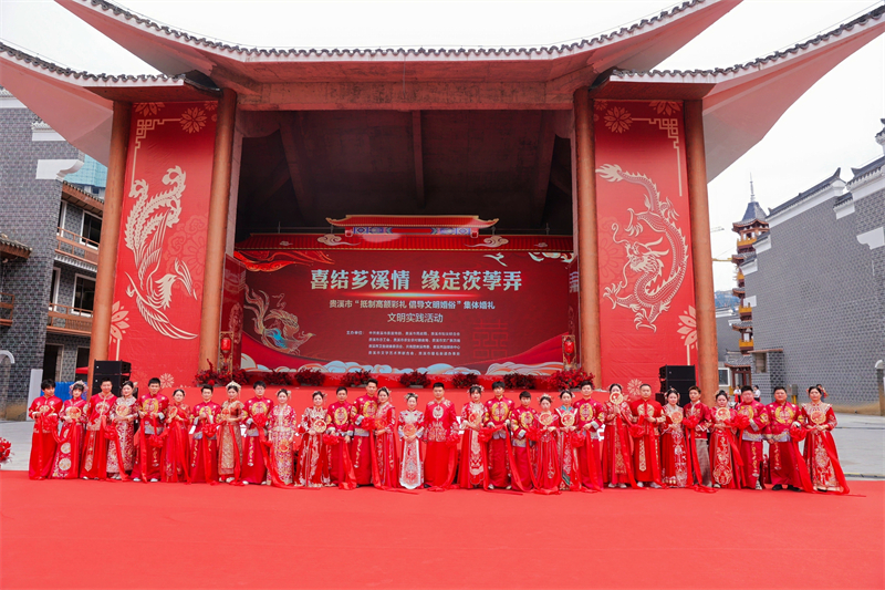 贵溪市举办“喜结芗溪情 缘定茨荸弄——抵制高额彩礼倡导文明婚俗”集体婚礼文明实践活动。贵溪市委宣传部供图