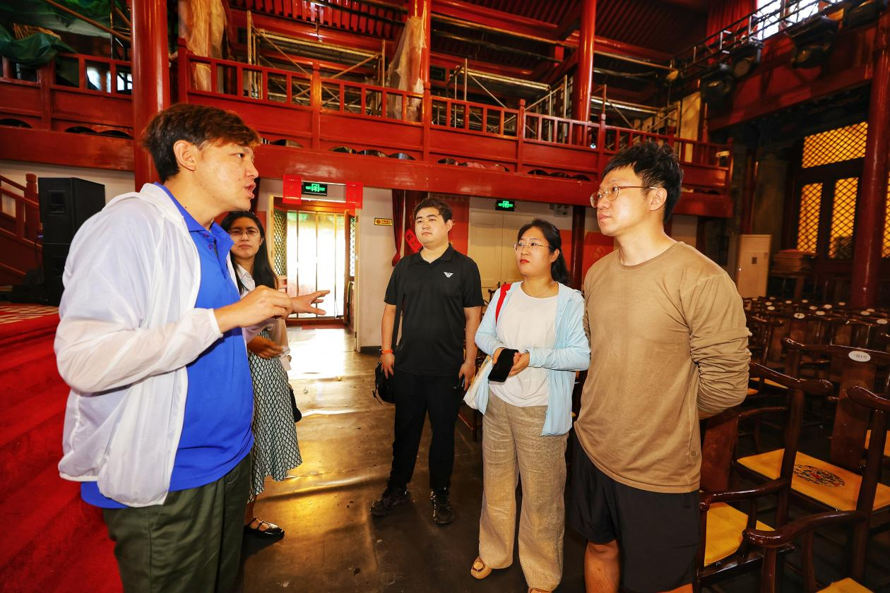 颜料会馆负责人向“文明中国”主题报道组介绍文艺演出和文化宣传情况。东城区文明办供图