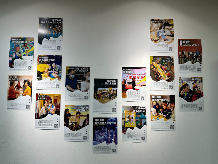 “美后肆时”景山市民文化中心公益活动宣传墙。李晏 摄