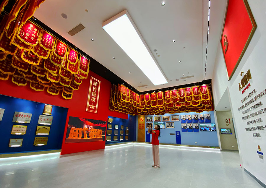 9月9日,“文明中国”主题采访报道组在挂满锦旗的时代楷模“漳州110”忠诚馆内采访。颜财斌 摄