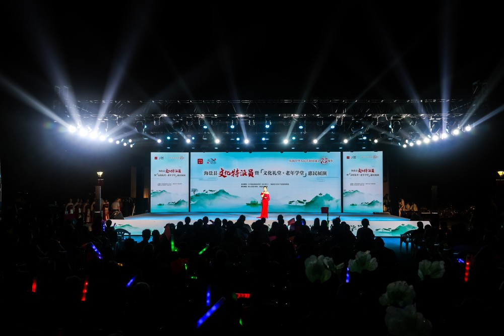 平湖市乍浦镇山海文化艺术生活季百姓大舞台之文化惠民巡演。新华网发(嘉兴市乍浦柏事吉喜庆服务部 张小英 摄)