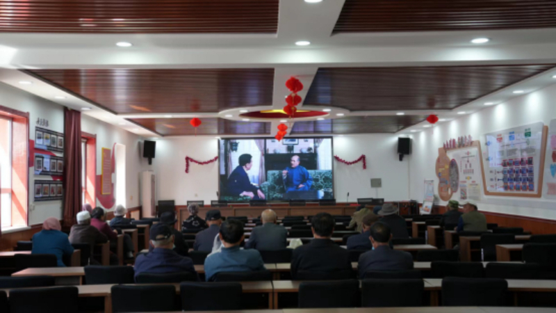 灵武市崇兴镇台子村开展红色电影教育,加强台子村精神文明建设工作。新华网发(银川市灵武市融媒体中心记者 段志惠 摄)