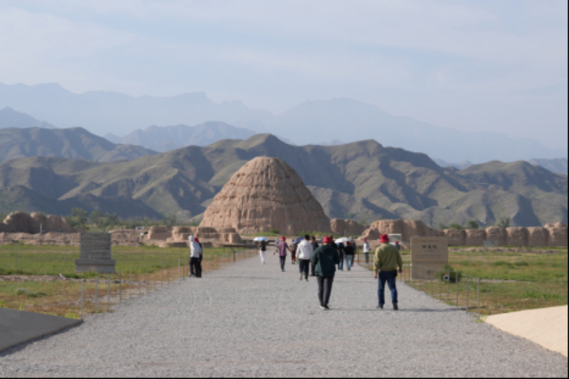 游客参观西夏陵遗址,探寻神秘的西夏历史。新华网发(西夏区融媒体中心工作人员 刘国正 摄)
