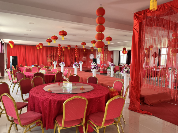 银川市永宁县许桥中心村民俗服务中心为新人提供的婚嫁场地。新华网发(银川市永宁县委宣传部专干 吴倩如 摄)