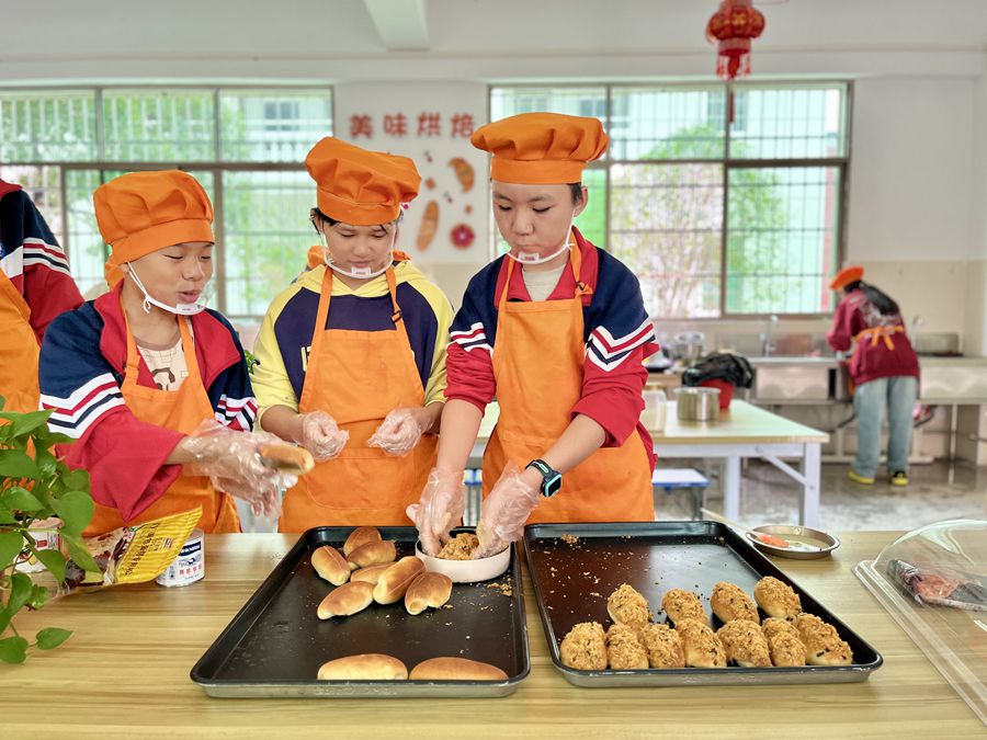 10月29日,衡阳市衡南县茶市联合学校的学生正在上烘焙课。新华网 张群 摄