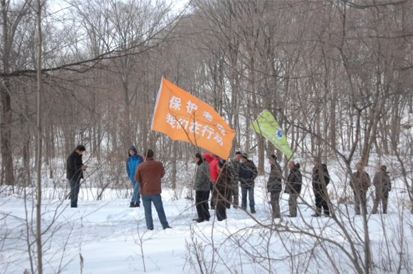李荣富带领志愿者开展野生动物保护活动。吉林省文明办 供图