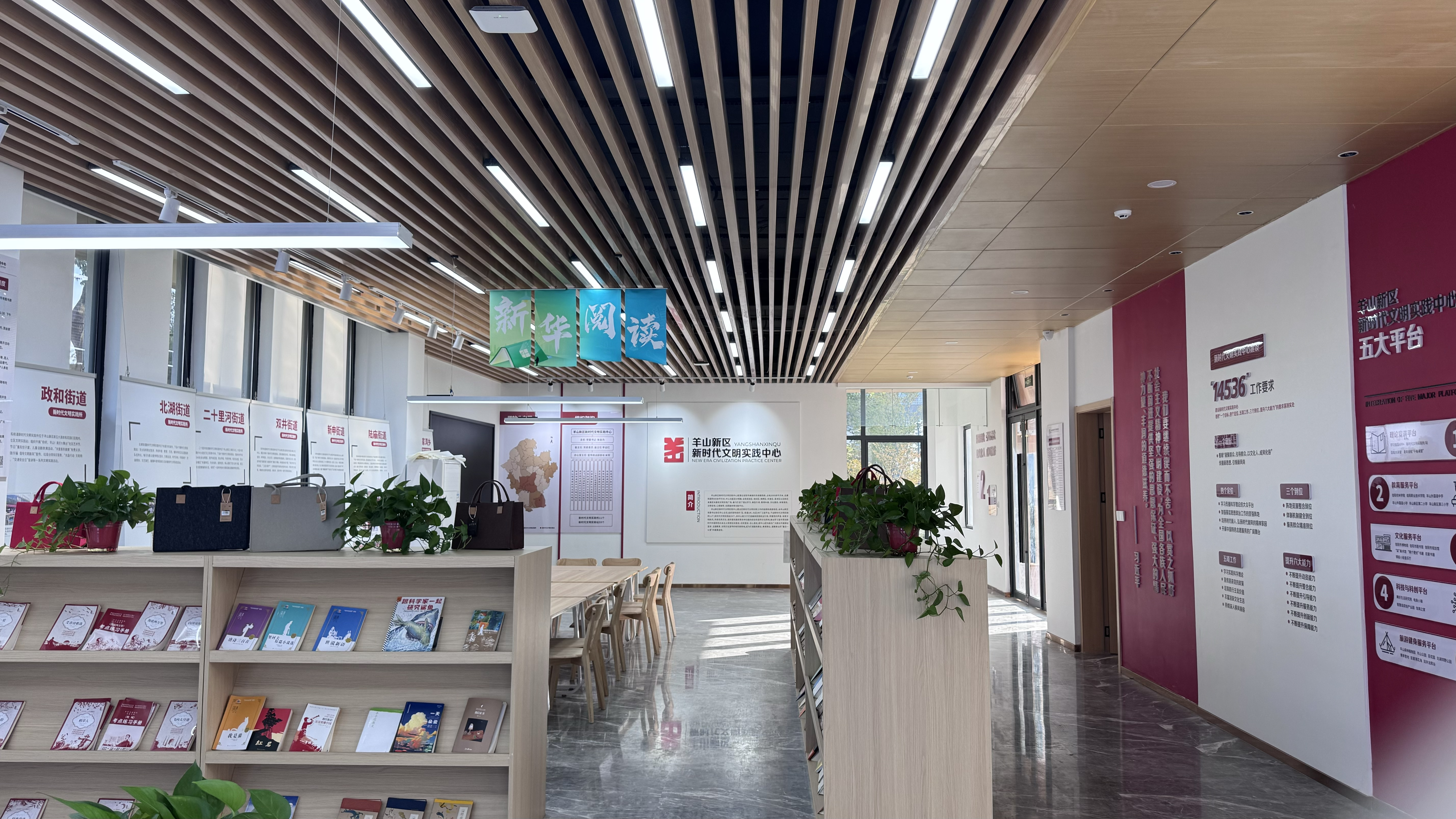 羊山新区与新华书店深度合作,在新时代文明实践中心打造了集休闲、阅览、讲座、文创、科技体验、绿色种植等为一体的大型文化综合体,初步实现“政府统筹、国有代营、群众参与”的管理运行模式。