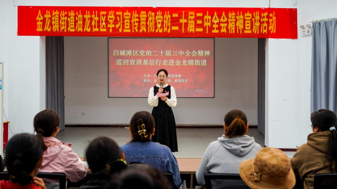 白碱滩区金龙镇游龙社区新时代文明实践站开展党的二十届三中全会宣讲活动。白碱滩区新时代文明实践中心供图