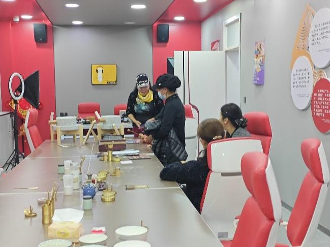 白碱滩区居民在新时代文明实践中心体验漆扇制作。宋海波 摄
