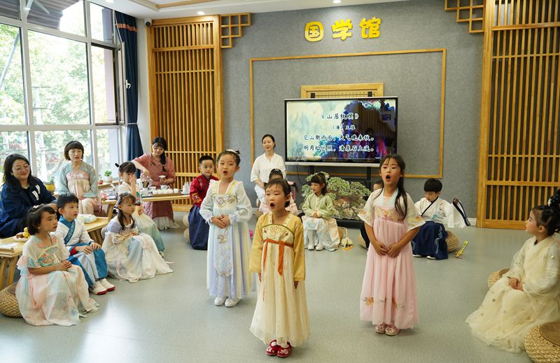 天水市各级幼儿园注重将幼儿教育与中华优秀传统节日文化相结合,积极构建幼儿真心喜爱、终身受益的传统文化课程体系。图为天水市实验幼儿园举办的中秋诗会。(天水市文明办供图)