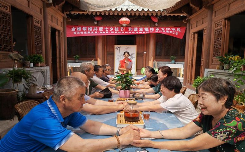 天水市持续加强家庭家教家风建设。图为2024年8月在西关古城开展的“金婚银婚共度七夕佳节·和谐幸福传承文明家风”主题活动。(天水市文明办供图)