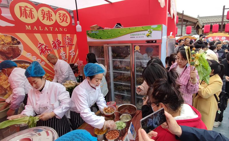 2024年3月以来,“天水麻辣烫”火爆出圈,吸引了众多美食达人关注,纷纷到天水打卡、探店。这是“天水麻辣烫吃货节”期间,来自全国各地的游客在天水古城共赴一场热辣滚烫的美食之旅。(天水市文明办供图)