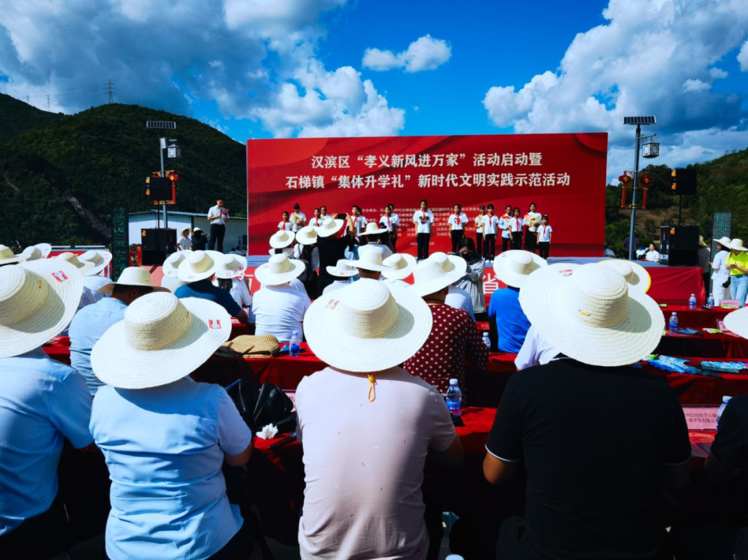 汉滨区“孝义新风进万家”暨石梯镇“集体升学礼”新时代文明实践示范活动。活动现场,向评选出的84名石梯镇道德模范颁发了荣誉证书,为35名准大学生们颁发励志奖学金。