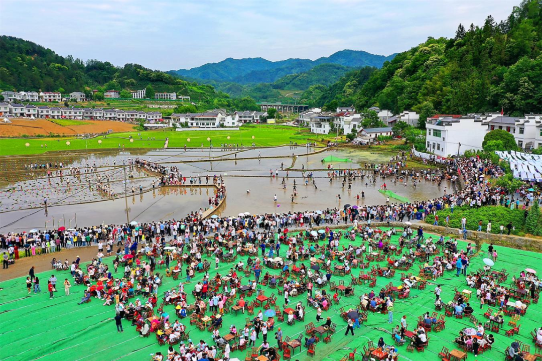 平利县广佛镇第三届插秧节在八角庙村举行。独具特色的农家宴席——簸箕宴将活动氛围推向顶点,游客围坐在一起,品尝着美味的农家菜肴,感受着田园生活的温馨与美好。