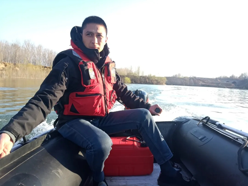 “中国好人”李亮在进行冲锋舟操作训练。新华网发(潍坊昌乐县雪豹应急救援中心 秦江林摄)
