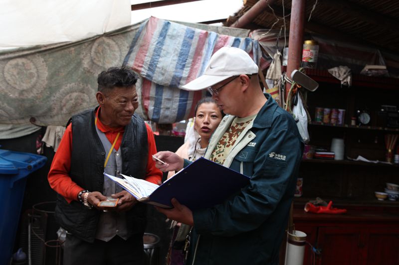 中国邮政集团有限公司格尔木市分公司投递员葛军正在“格唐邮路”沿线牧民家中收取需要寄递的包裹。新华网发(中国邮政集团有限公司格尔木市分公司供图)