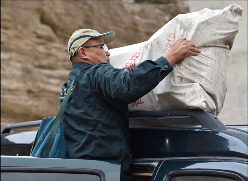 中国邮政集团有限公司格尔木市分公司投递员葛军正在“格唐邮路”沿线投递包裹。新华网发(中国邮政集团有限公司格尔木市分公司供图)