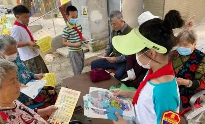 金普新区先进街道红领巾楼道长开展垃圾分类宣传。(图片来源:大连市文明办)