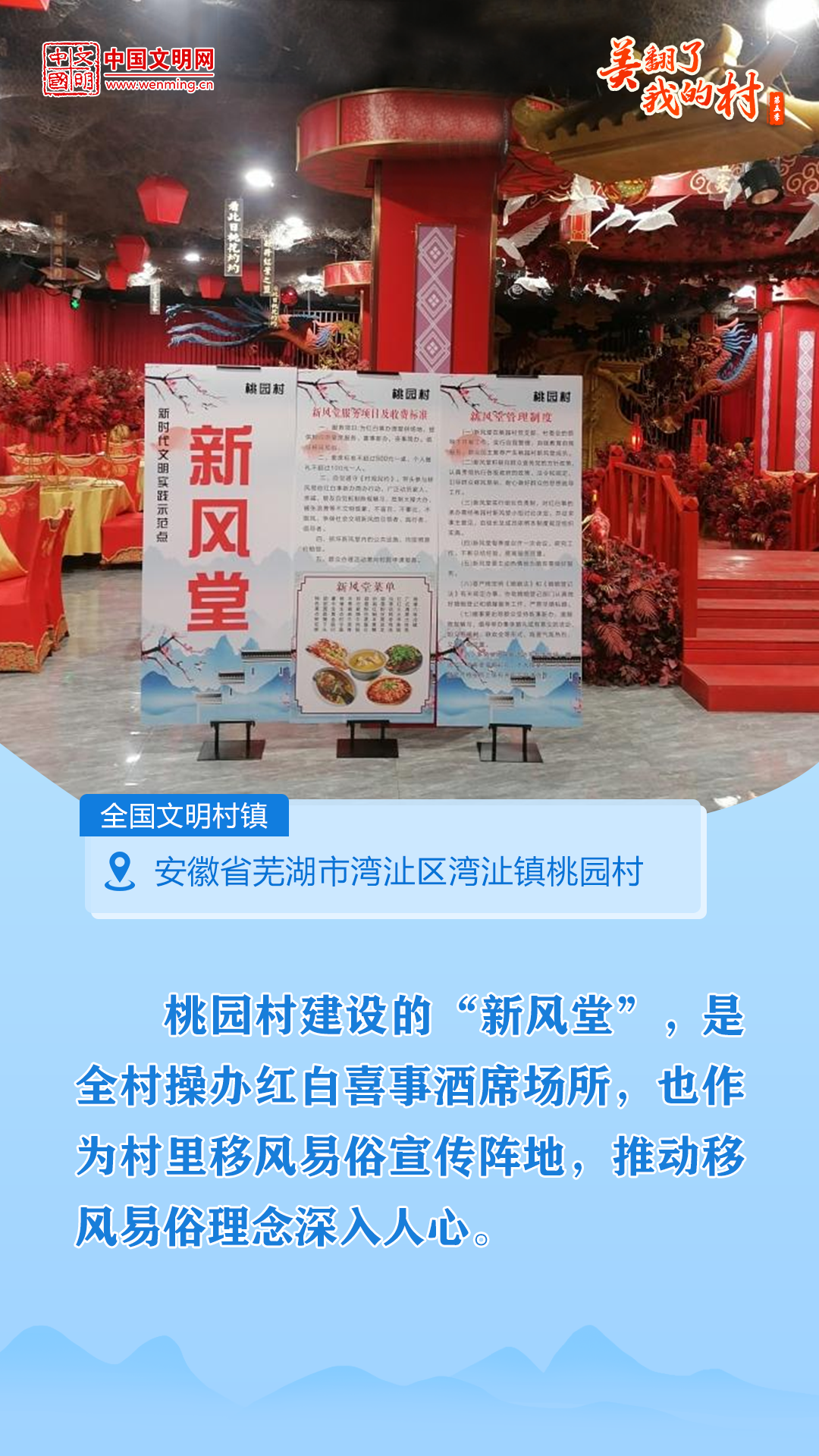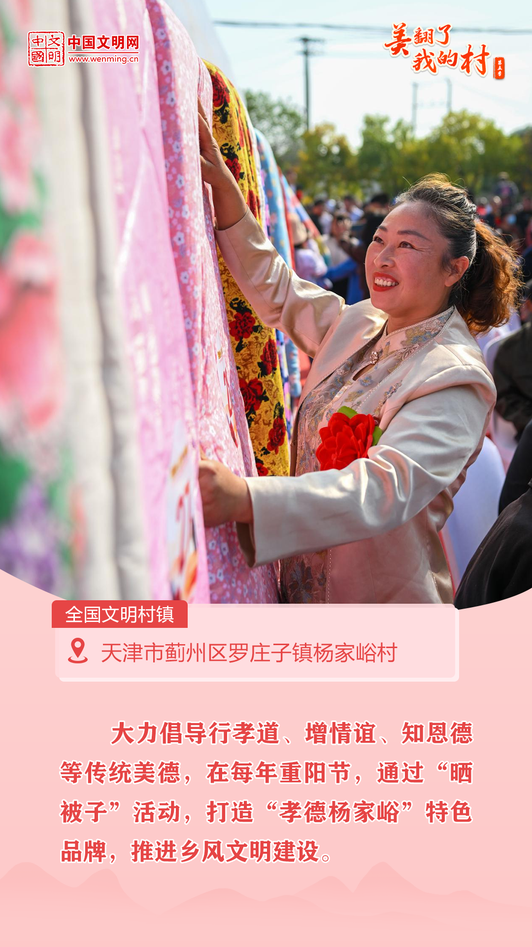 为全面贯彻党的二十大和二十届二中、三中全会精神,生动展现农村精神文明建设新经验新成果,中宣部文明创建局、中国文明网联合开展“美翻了我的村”第五季网上图片征集展示活动,展现新时代美丽乡村的丰硕成果,传承优秀家风家训文化,弘扬文明乡风、良好家风、淳朴民风。