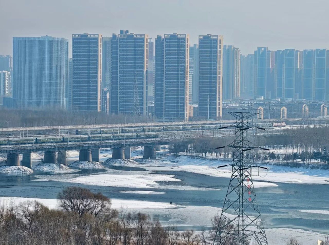 哈大客运专线上,高铁列车驶过沈阳市浑河大桥。