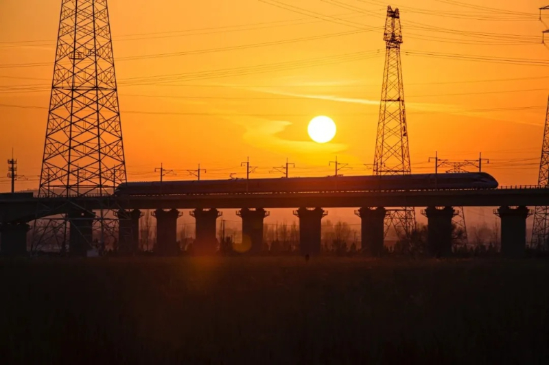 雪后高铁穿越崇山峻岭,与大自然共同描绘出浓墨重彩的磅礴画卷。