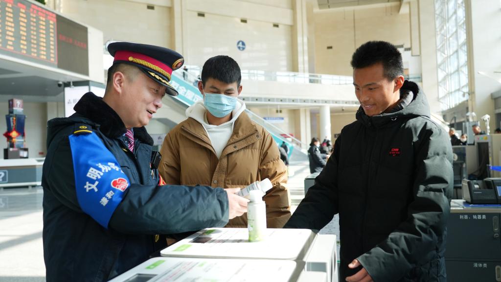 合肥站客运值班员为旅客讲解禁止携带物品相关规定。